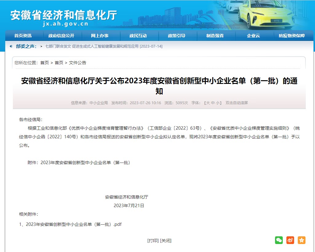 喜訊!環(huán)通公司上榜2023年度安徽省創(chuàng)新型中小企業(yè)名單(第一批)