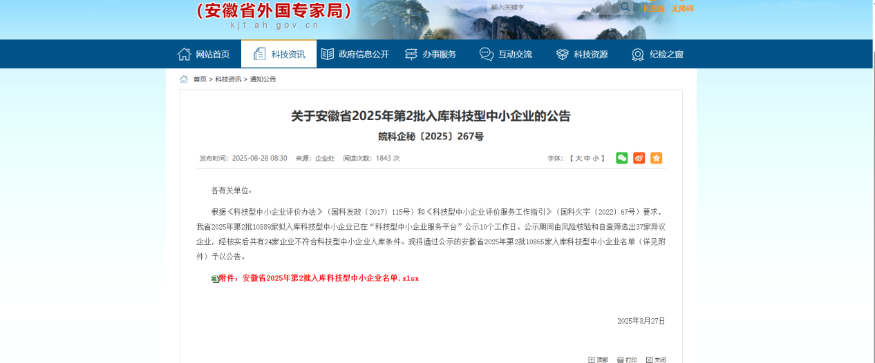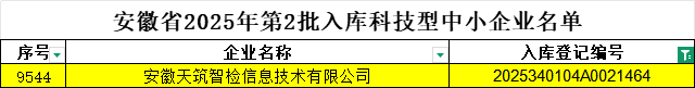 近日,安徽省科學技術廳公布2025年第二批入庫科技型中小企業名單,安徽天筑智檢信息技術有限公司再度入選,連續兩年獲此認證,標志著省級科技管理部門對天筑智檢自主創新能力、技術研發活力及發展潛力的高度認可。