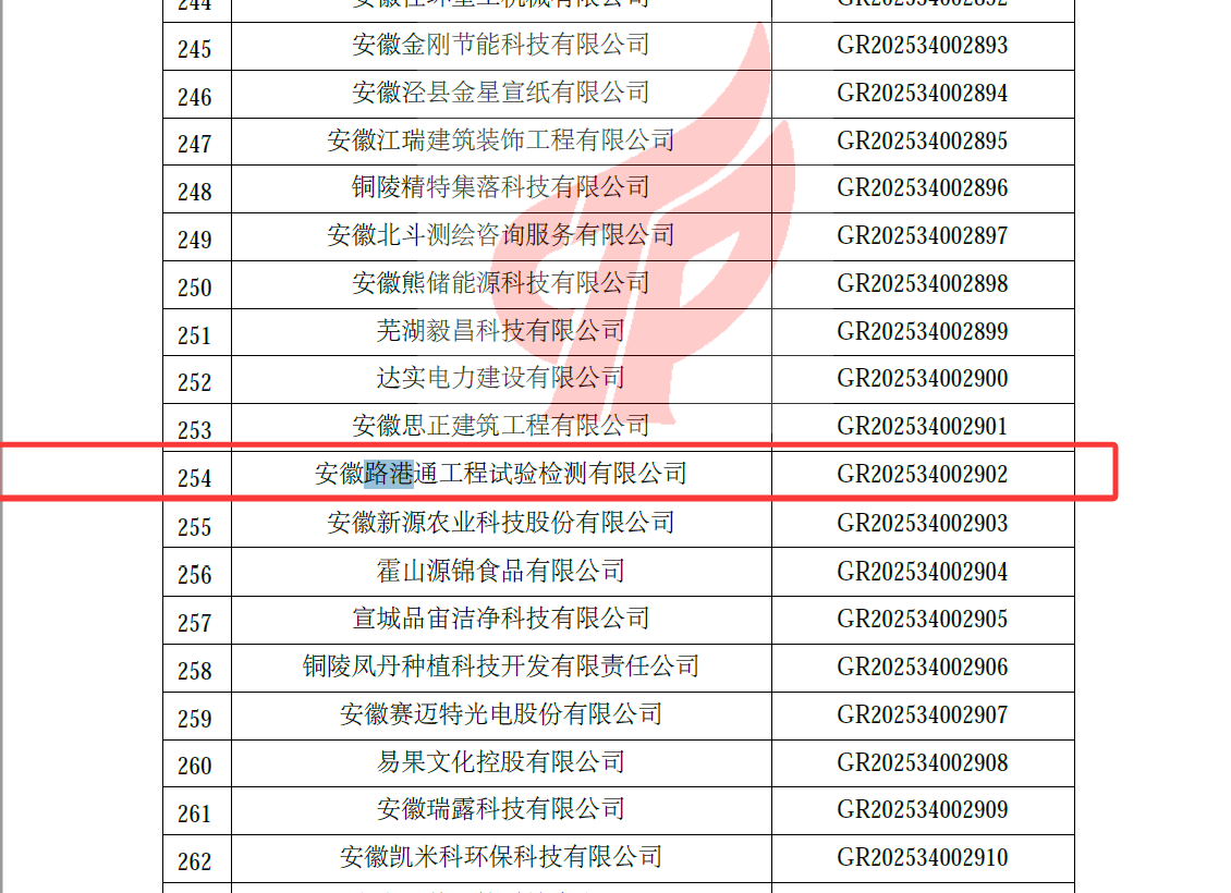 近日,路港通檢測順利通過國家高新技術企業復評審,再次榮獲“高新技術企業”認定資質。